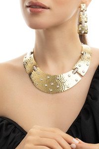 DETAILS AND INSIGHT Hammered 18k yellow gold Starlight necklace with brilliant cut diamonds and platinum from David Webb. Diamonds (TW 8.41cts) Available in 18K Yellow Gold Style CS258-10713N