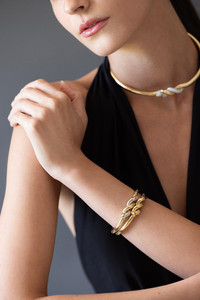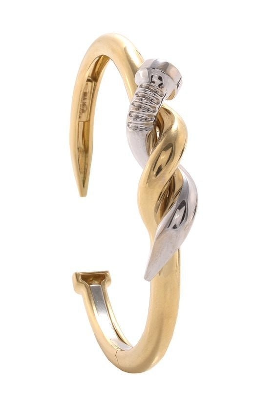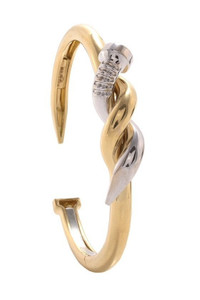 DETAILS AND INSIGHT David Webb two tone twisted diamond nail cuff in yellow gold. 18K Yellow Gold, Platinum Diamonds 2.61Ctw Style N85-60601B