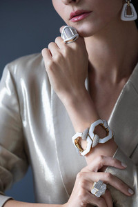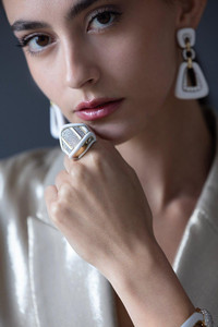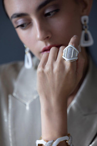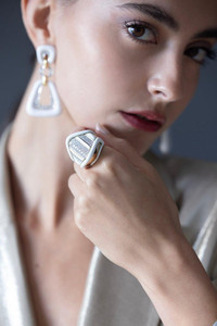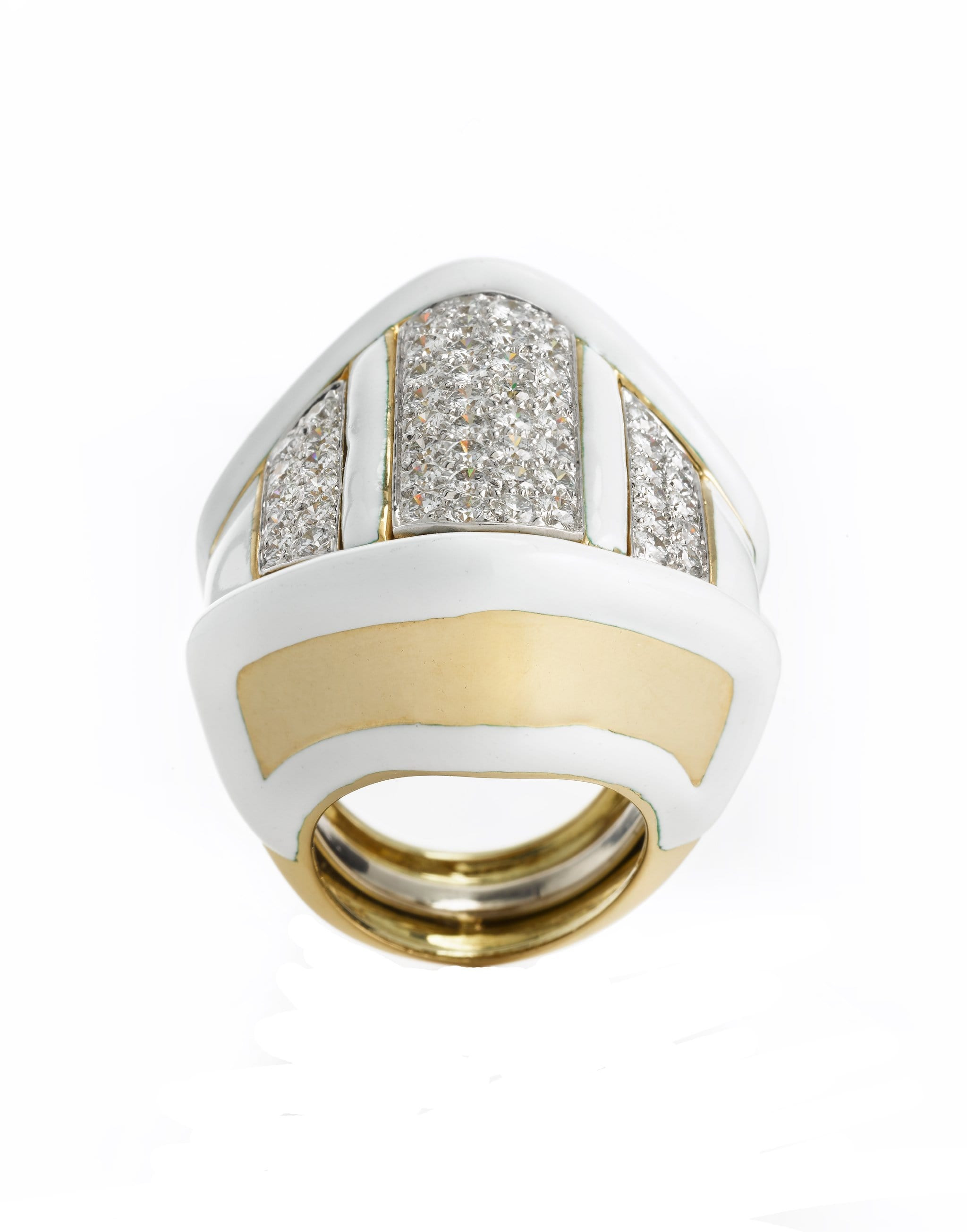 DETAILS AND INSIGHT David Webb white enamel ring with pave set diamond. Size 5 Diamonds (TW 2.41cts) 18K Yellow Gold and Platinum Style JS30-30848R