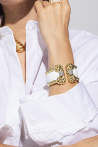 DETAILS AND INSIGHT David Webb white enamel rope cuff bracelet in yellow gold. 18K Yellow Gold, Platinum, Enamel Brilliant-cut diamonds 2.60ctw Style NS705-07609B-XYWXX