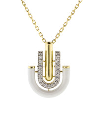 DETAILS AND INSIGHT David Webb white unity necklace in yellow gold. 16" L 18K Yellow Gold, Enamel Diamonds (0.35Ctw) Style MM70-50574N
