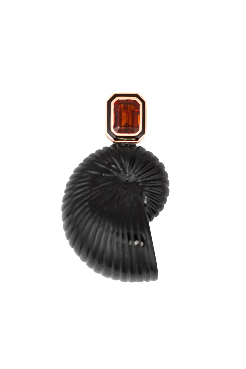 DETAILS AND INSIGHT Dezso carved onyx nautilus citrine charm in rose gold. 18K Rose Gold, Enamel Onyx, Citrine Style W.NAEMCT-OX