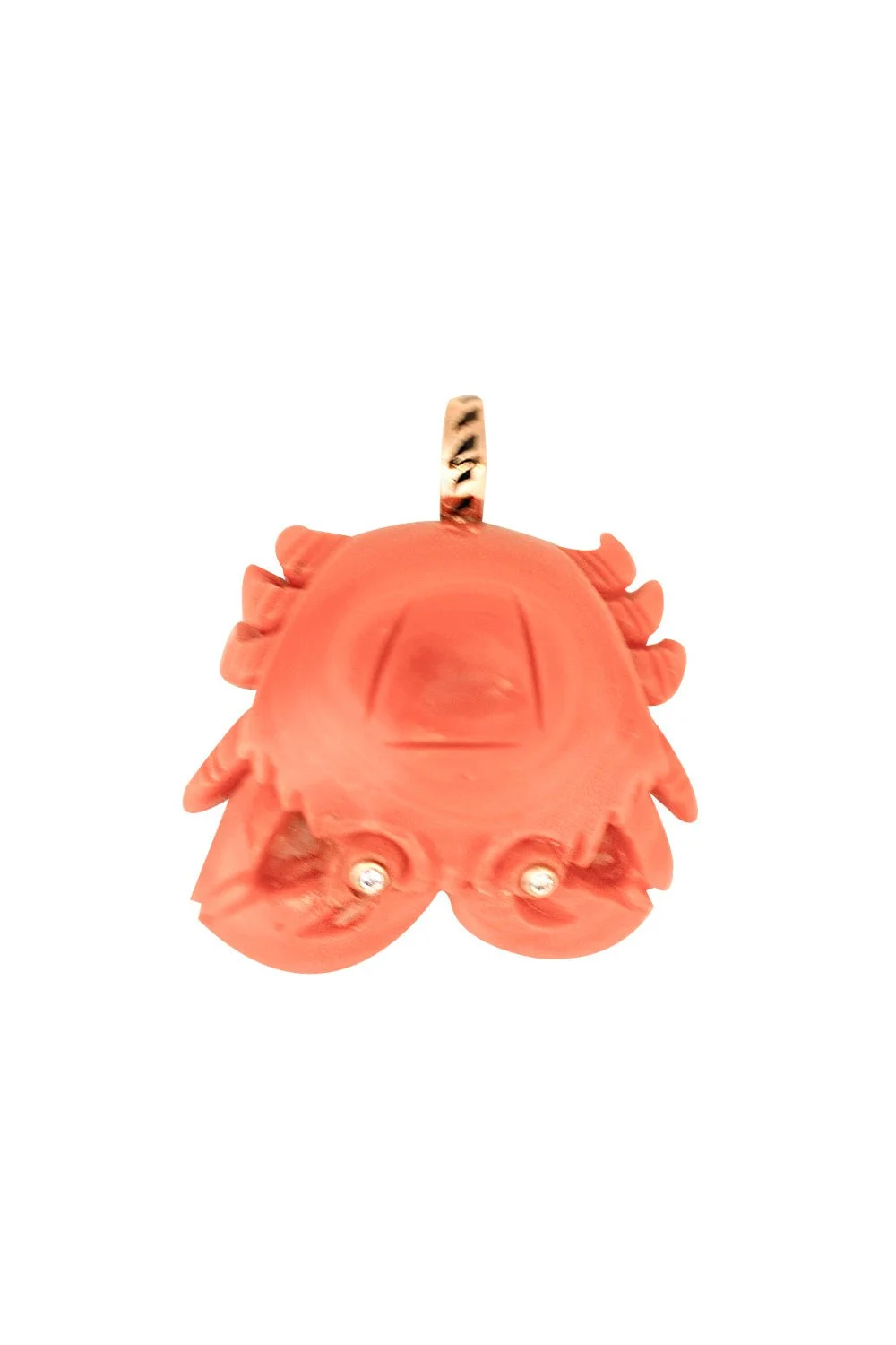 DETAILS AND INSIGHT Dezso by Sara Beltran coral crab pendant in rose gold. 18K Rose Gold, Enamel .01ctw Diamond 0.9 in x 0.3 in x 0.90 in Style W.CRBNDM