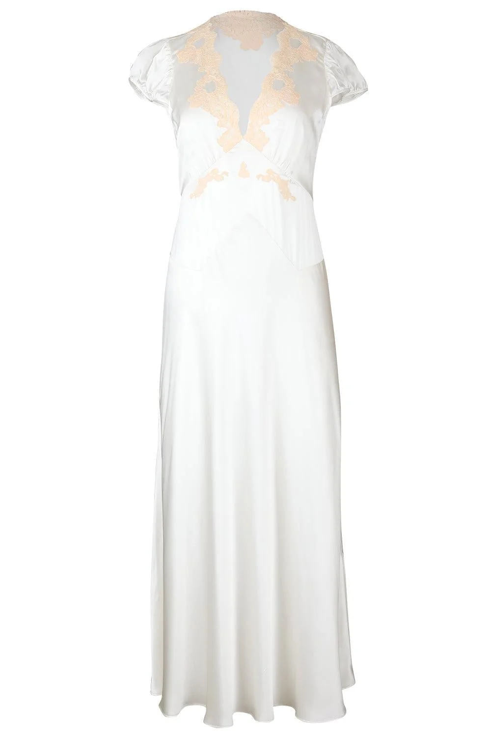 DETAILS AND INSIGHT Doen coraline dress in salt and peach lace. 100% Silk Dry Clean Only Made In China Style 942-2453-SALT WITH SOFT PEACH