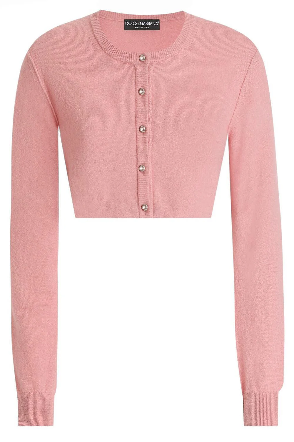 DETAILS AND INSIGHT Dolce & Gabbana crop cardigan in dark powder pink. 04% Co + 01% Ea + 95% Ws Light Dry Clean Made In Italy Style FXVDLZ-JBW0B-F0473