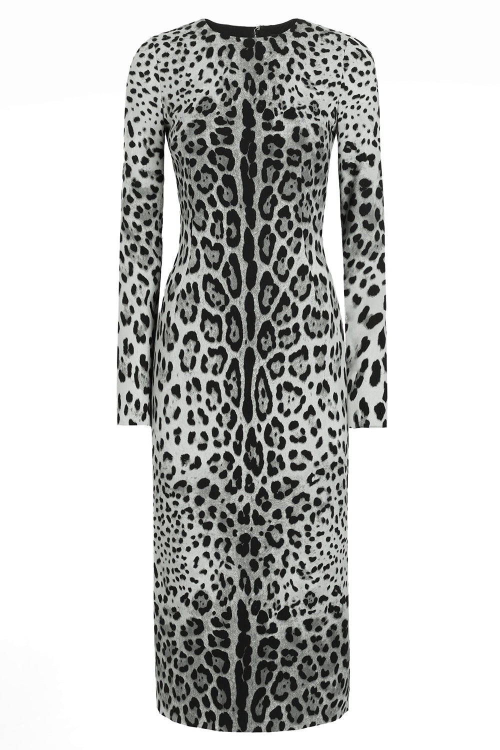 DETAILS AND INSIGHT Dolce & Gabbana leopard print midi dress in nero/grigio. External composition: 95% Silk 05% Spandex Internal composition: 91% Silk 09% Spandex Dry clean Made in Italy Style F6TKPT-FSADD-HI13N