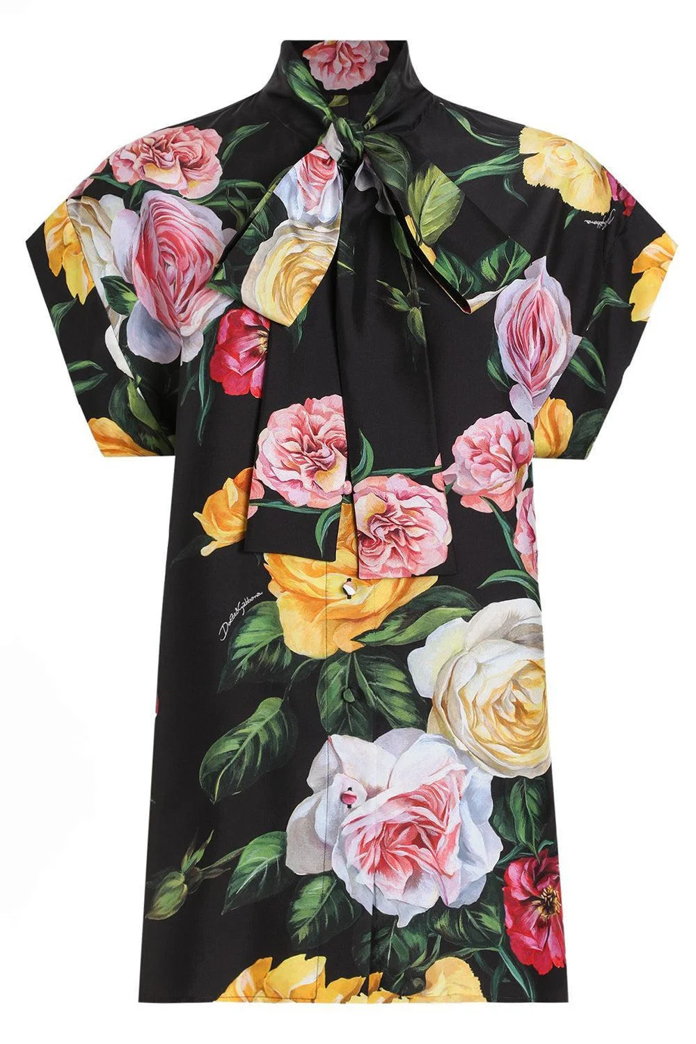 DETAILS AND INSIGHT Dolce & Gabbana peonie tie neck blouse in poenie/rose nero Silk Habotai Dry Clean Made in Italy Style F5T25T-IS1XJ-HN5IY