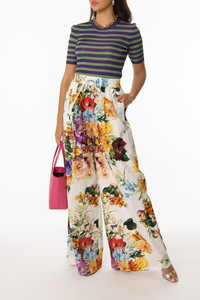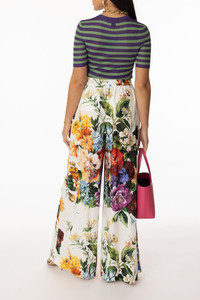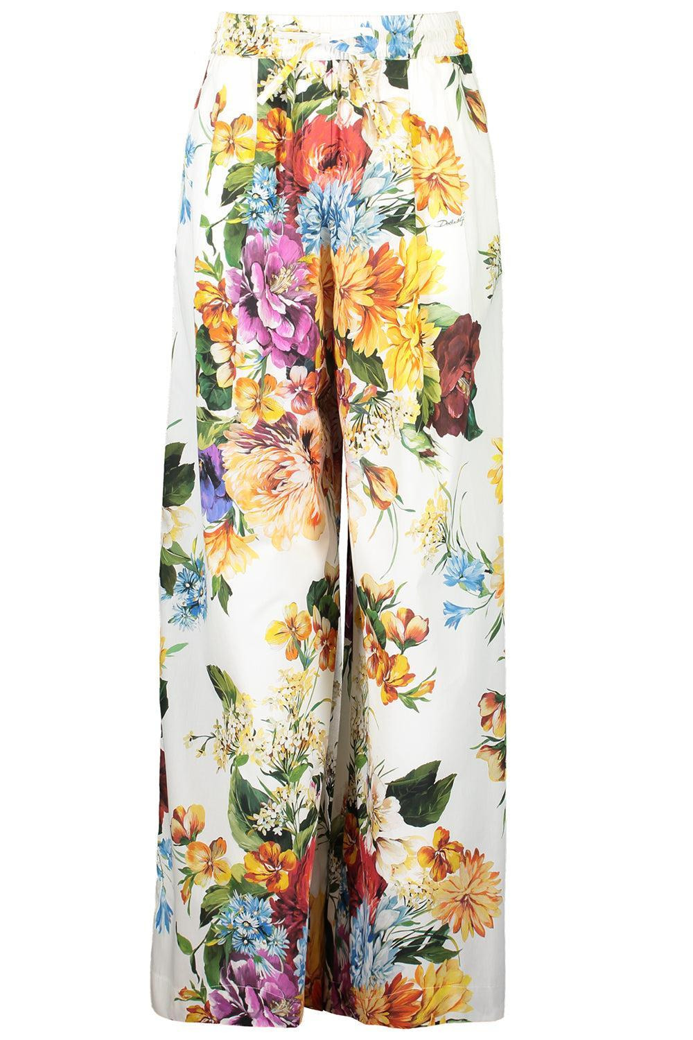 DETAILS AND INSIGHT Dolce & Gabbana poplin wide leg pant in white flowers print. 100%Cotton Cool Iron / Light Dry Cleaning / No Tumbler Made In Italy Style FTDCOT-HS5TR-HA5PC