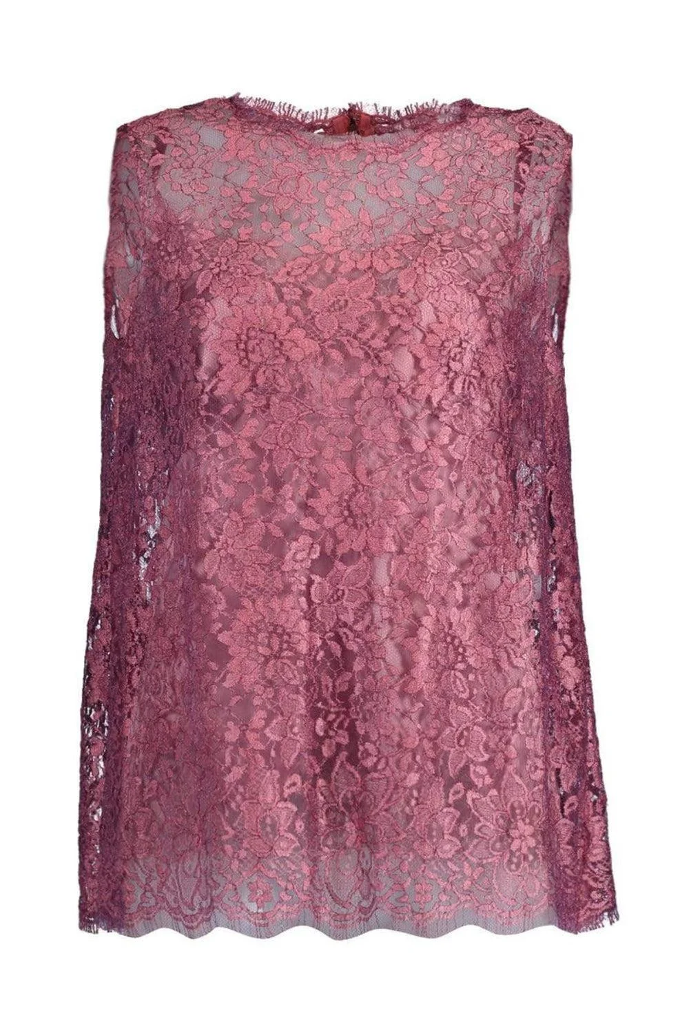 DETAILS AND INSIGHT Dolce & Gabbana sleeveless lace lame top with cami lining, roundneck, regular fit, and a zip fastening at back. 68% Viscose, 22% Polyamide, 10% Polyester, Dry Clean Made in Italy, Italian Sizing Style F74D3T HLM08 F6747