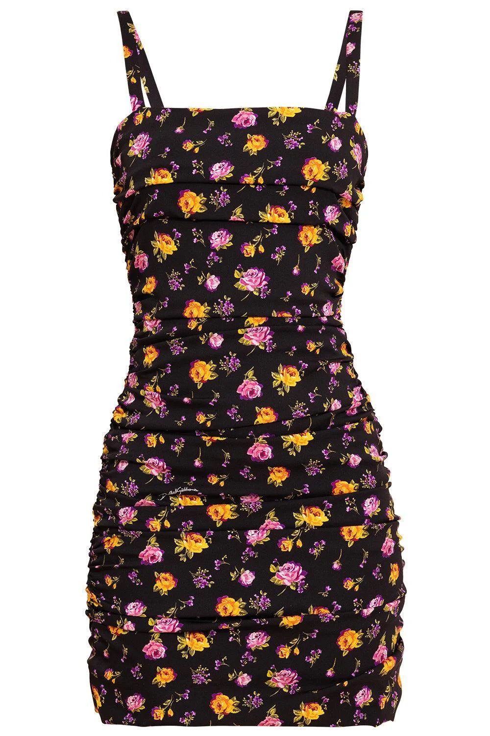 DETAILS AND INSIGHT Dolce & Gabbana small rose boquet drape dress in rose mazzaloni. 94% Silk, 6% Elastane; Lining: 91% Silk, 9% Elastane Dry Clean Made in Italy Style F60IIT-FSA8D-HN5XR