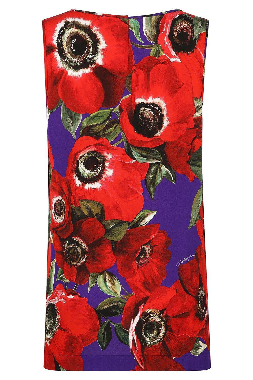 DETAILS AND INSIGHT Dolce & Gabbana tank top in purple anemones. 94% Silk 6% Spandex Dry Clean Made in IT Style F779CT-FSA55-HPAA5