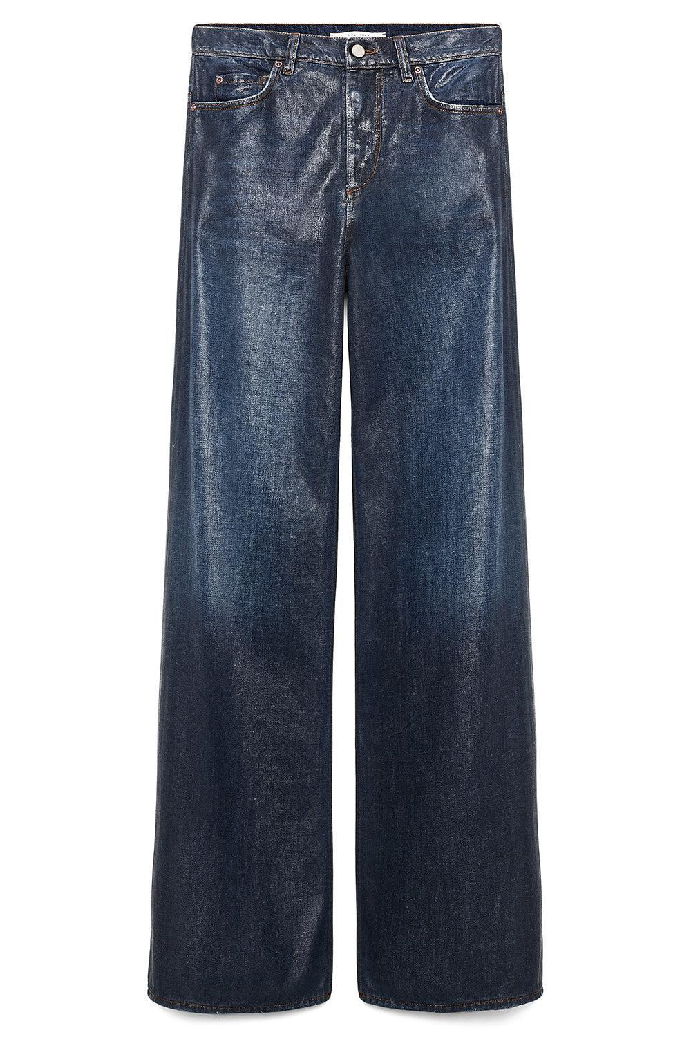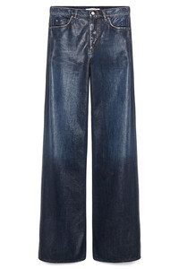 DETAILS AND INSIGHT Dorothee Schumacher romance pants in blue indigo. 100 % Cotton Hi Rise, Relaxed Wide Leg Dry Clean Imported Style 845103-881