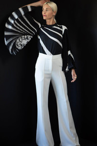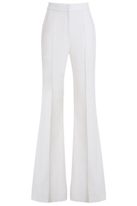 DETAILS AND INSIGHT Elie Saab crepe pant in optic white. 50% Viscose, 47% Acetate, 3% Elastane; Lining: 100% Silk Dry Clean Made in Italy Style 13613-OPTIC WHITE