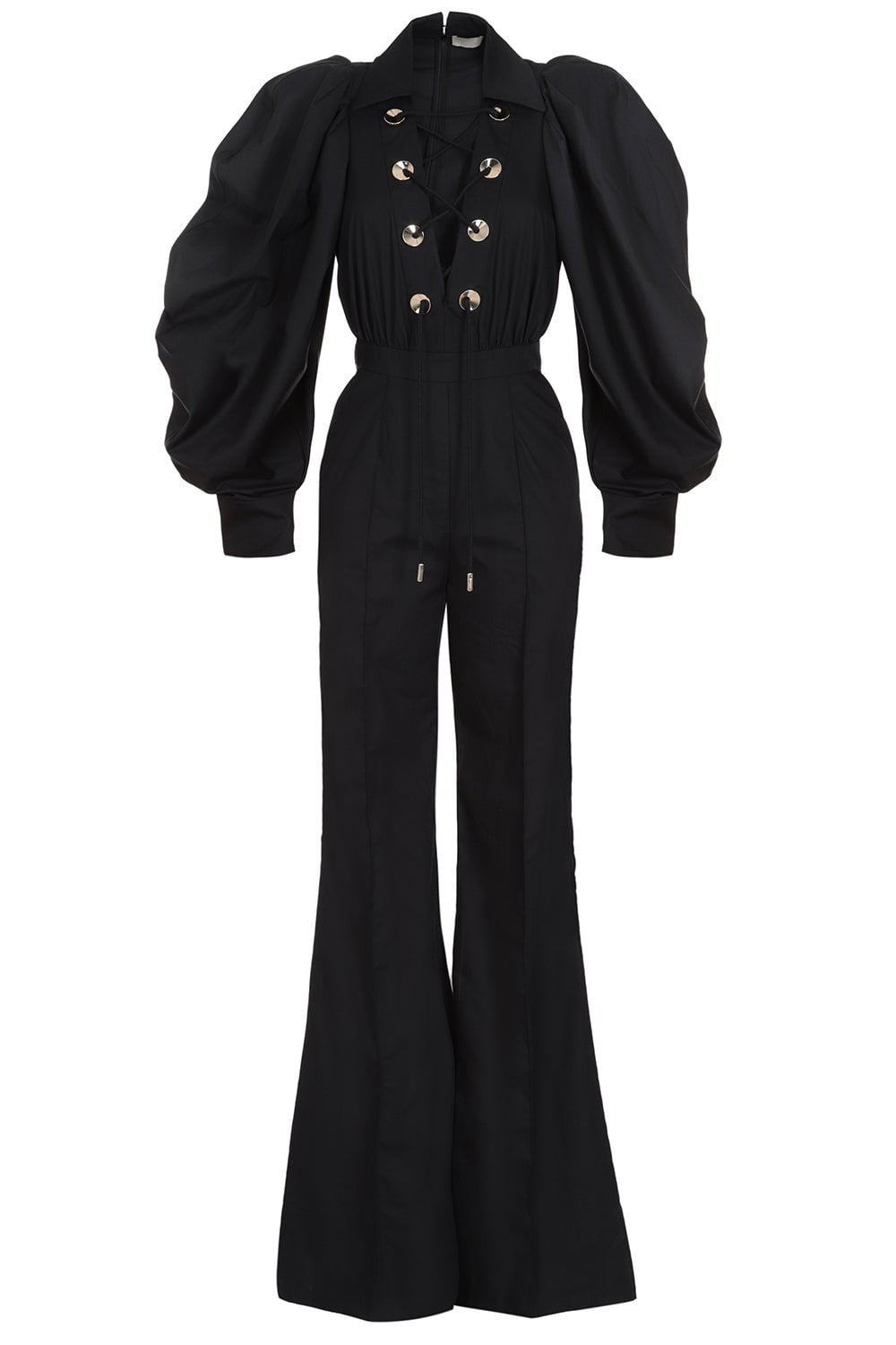 DETAILS AND INSIGHT Elie Saab heavy cotton jumpsuit in black. 65% Polyester, 35% Cotton Machine Wash Cold Made in Italy Style 13592
