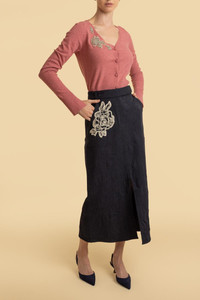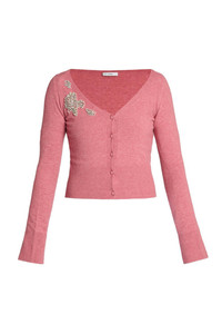 DETAILS AND INSIGHT Erdem cropped cardigan in pink. 59% Polyester 23% Viscose 10% Wool Merino 5% Cashmere 3% E Emb:55% Glass 40% Brass 5% Nylon 5%Cot Dry Clean Made In China Ship By Aug 21 Style PF25_KT18_30015007