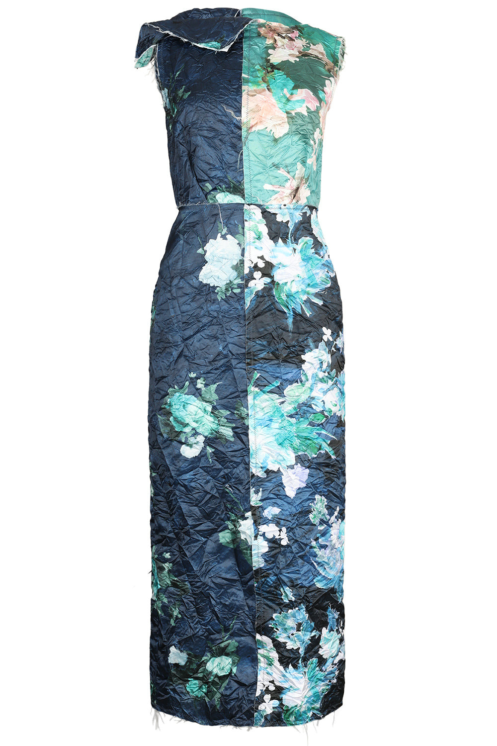 DETAILS AND INSIGHT Erdem short sleeve cocktail dress in painted bloom navy. M: 100% Polyester L: 73% Acetate 27% Silk Delicate Dry Clean Made In Bulgaria Style AW25_D172_50544001-PTD BLM NV