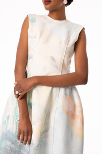DETAILS AND INSIGHT Erdem sleeveless midi dress in kaye donachie painting multi. F1: 100% Cotton F2: Scuba Base: Pl 92% Ea 8% L: 100% Silk Dry Clean Made In United Kingdom Ships by Oct 7 Style AW25_D155P_70148005-KAYEDONPNT