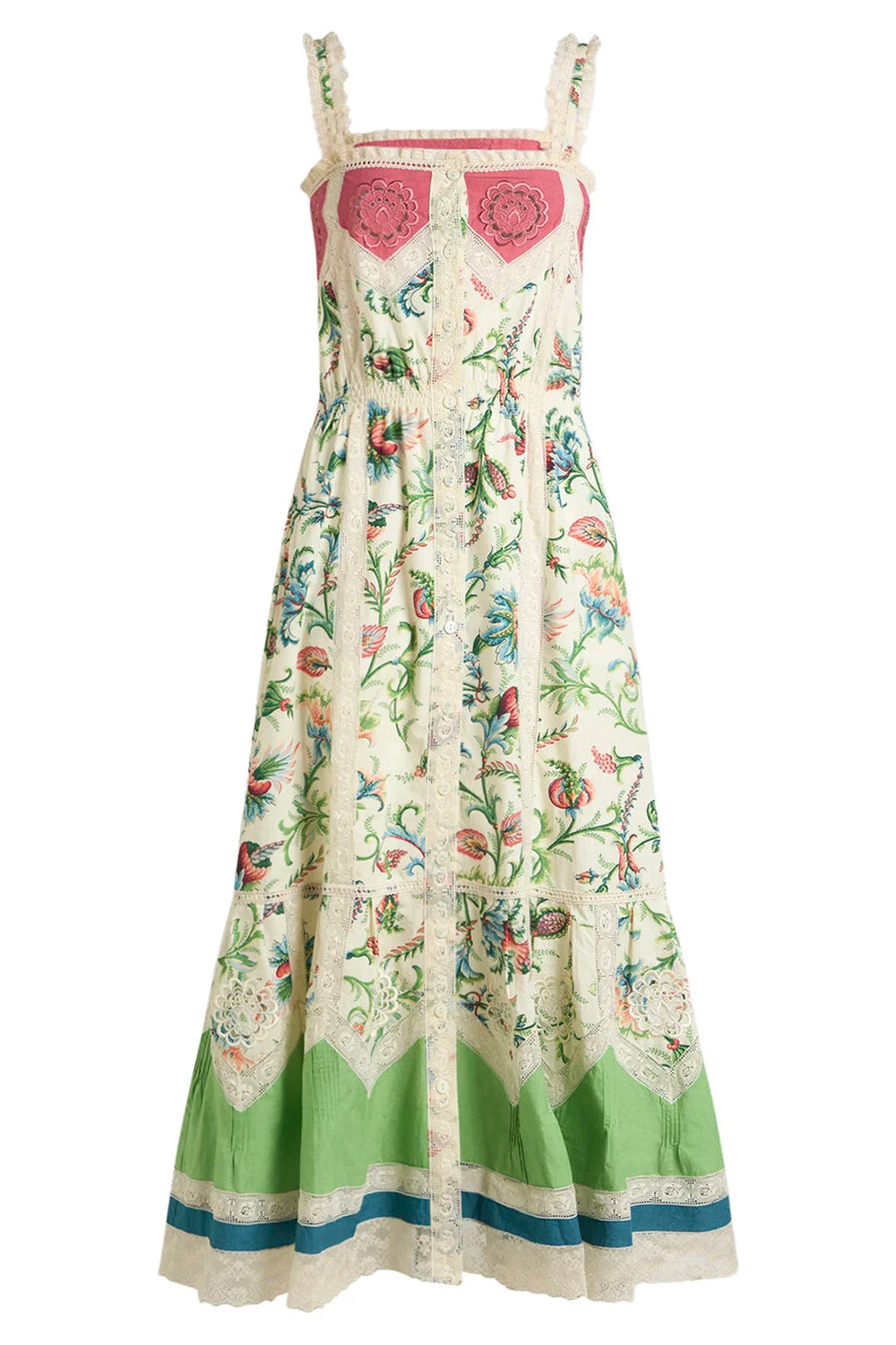 DETAILS AND INSIGHT Etro apron midi dress in ivory multi. Cotton Professionally Clean Made In Italy Pre-Order Ships by April 7 Style WRHA0581-AV892-X0803