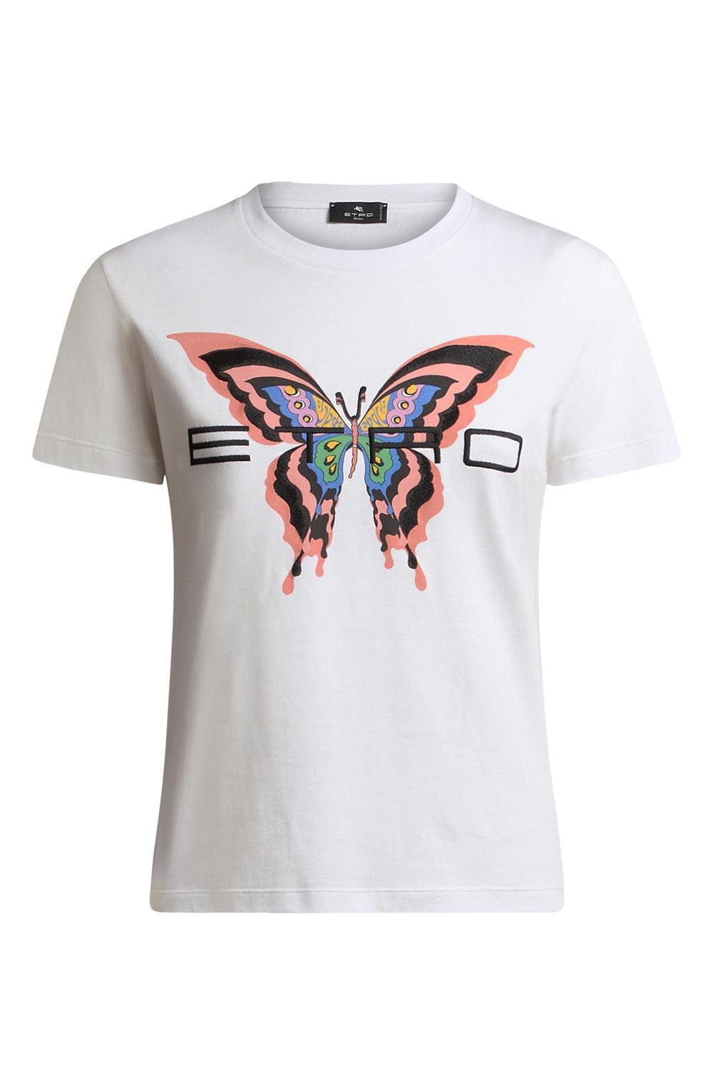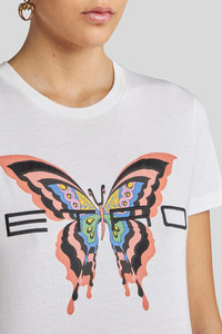 DETAILS AND INSIGHT Etro butterfly tee in white. 100% Cotton Embroidery thread: 100% Polyester Professionally clean Made in Italy Style WRMA0006-AK786-W0111