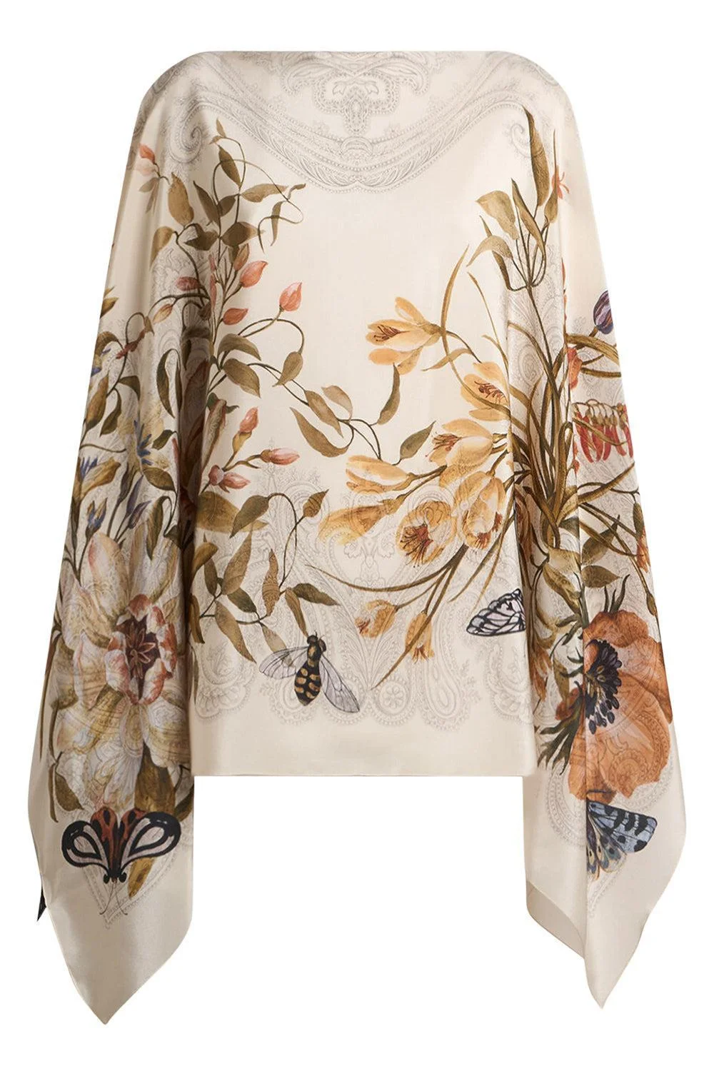 DETAILS AND INSIGHT Etro poncho blouse in beige. 100% Seta Professionally Cleaned Made In Italy Style WRJA0027-AKE68-S9820