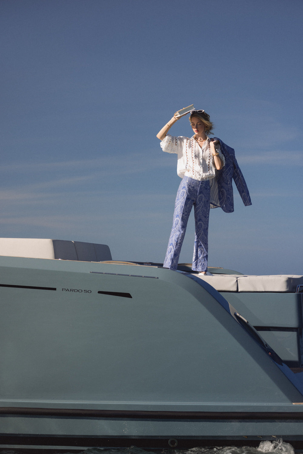 DETAILS AND INSIGHT Etro printed denim pant in blue multi. Hi Rise, Flare Leg 62% Cotone 37% Lino 1% Elastan Professionally Cleaned Made In Italy Ships by April 7 Style WRNB000499-TJEK7-S9880