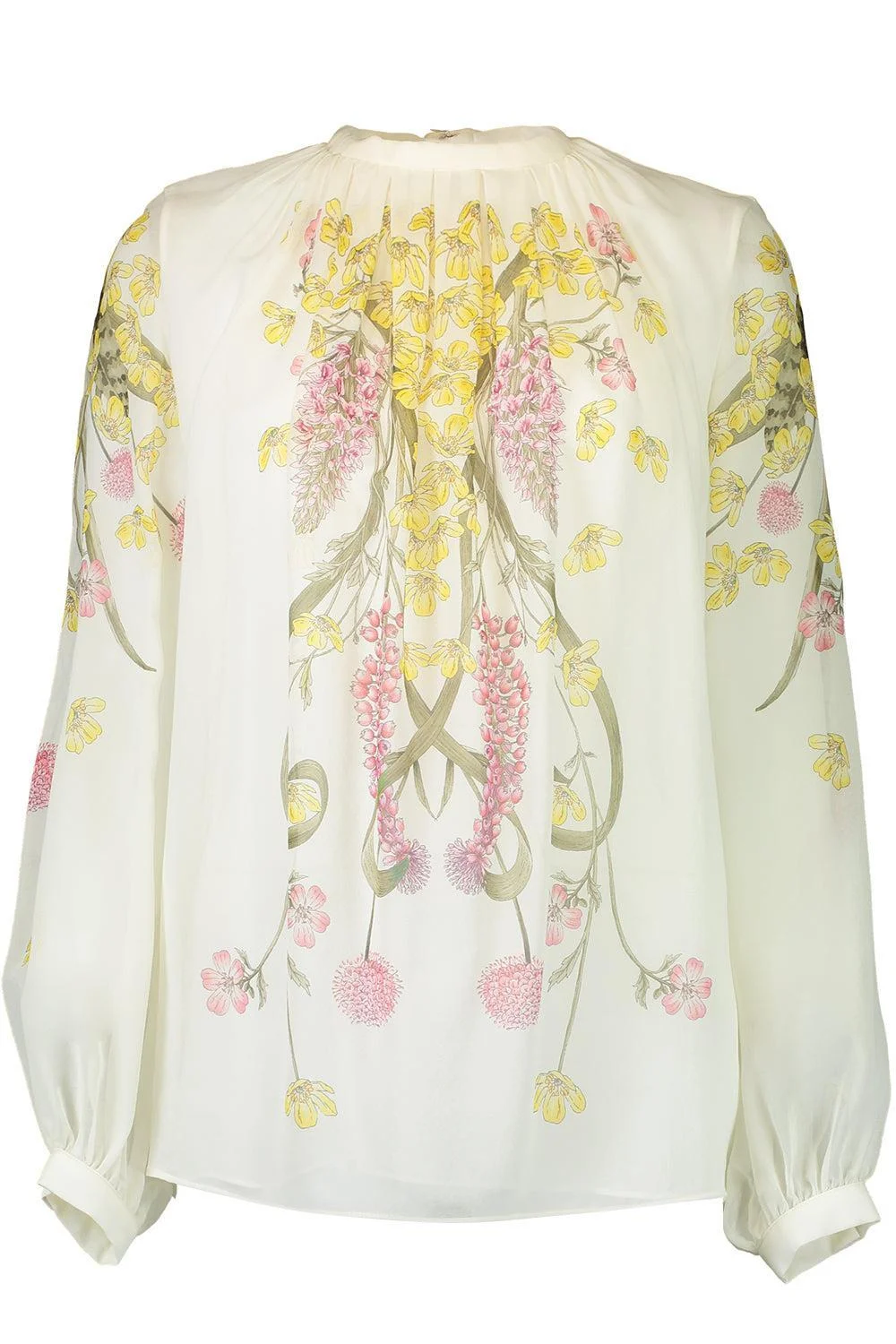 DETAILS AND INSIGHT Giambattista Valli long sleeve printed blouse in ivory multi. Georgette Dry Clean Made in Italy Style 25SSPVCA1039-69PRI-P015