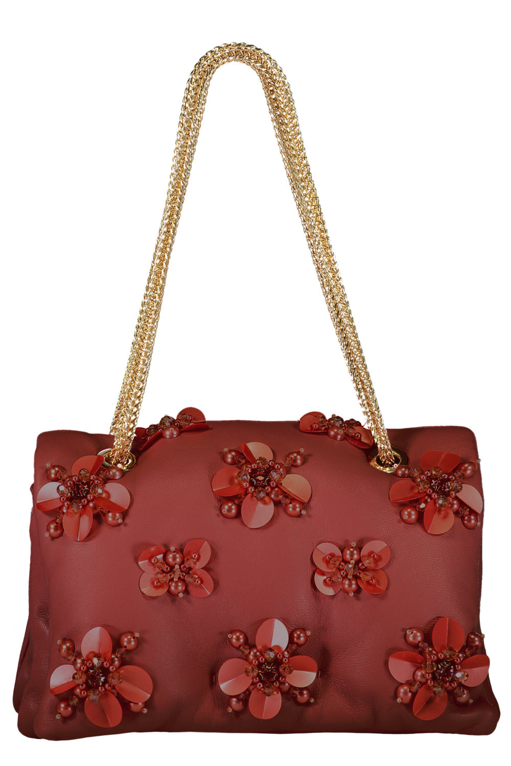 DETAILS AND INSIGHT Giambattista Valli mini airbag cushion bag in bordeaux/gold. 100% Lambskin 7.5 x 6.3 x 3.5" Fits Iphone 16 Pro Max Made in Italy Ships by Oct 22 Style 25FWXVSAB881-P9LLE-6005