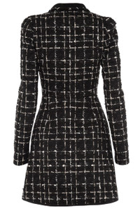 DETAILS AND INSIGHT Giambattista Valli tweed check long sleeve dress in black white. Dry Clean Made in Italy Style 22FWPVCA5013-25TWE