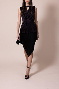 TOP IN CREPE WITH SATIN BACK WITH BUTTONS AND PLEATED EFFECT