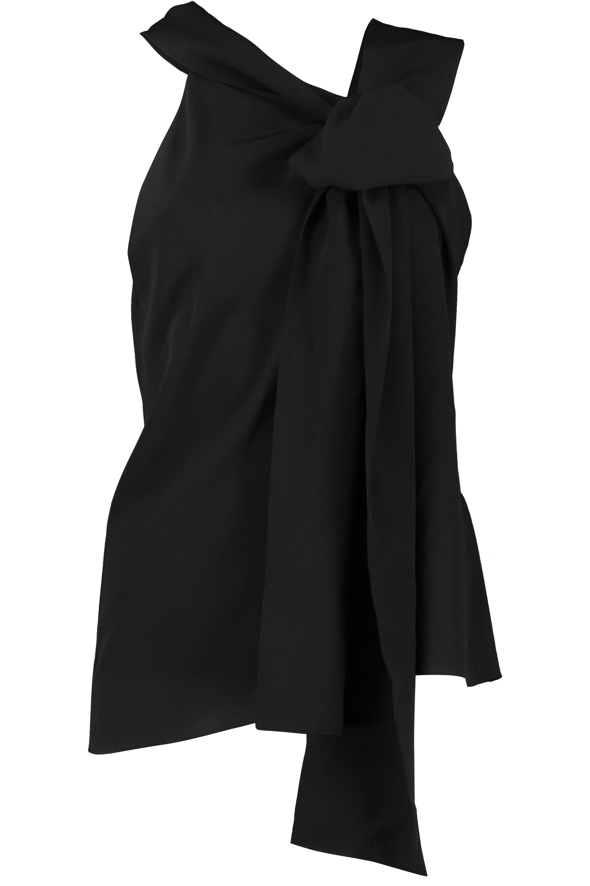 DETAILS AND INSIGHT Givenchy sleeveless blouse with lavaliere collar in black. 100% Silk Dry Clean Made in Italy Style BW60XF12EH001