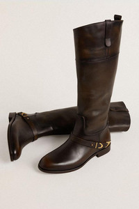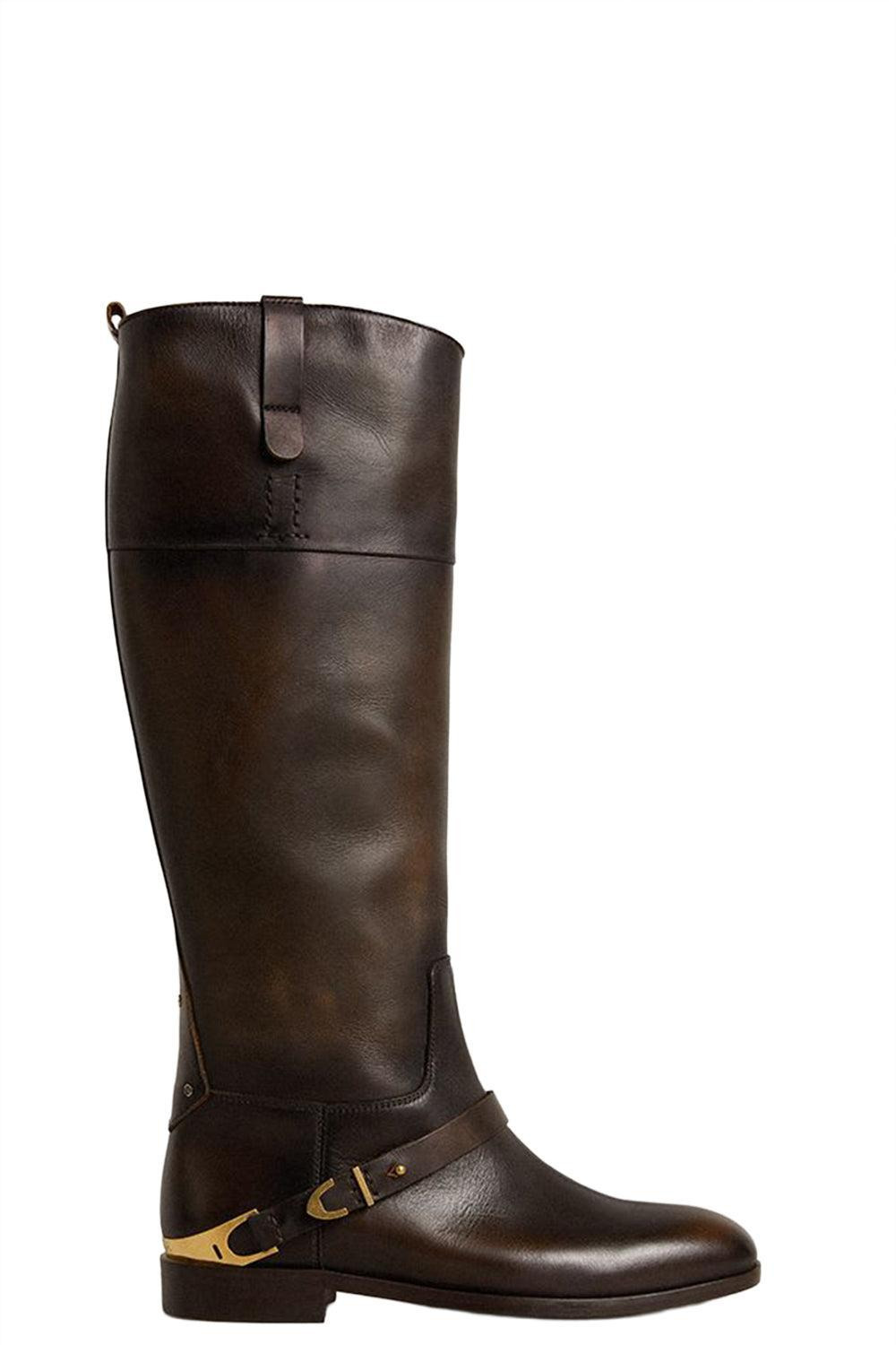 Women's Charlie boots in dark brown leather and clamp on the heel