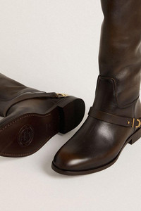 DETAILS AND INSIGHT Golden Goose charlie distressed leather boot in dark brown/beige. Cow Leather 100% Made In Italy Ships by Sept 7 Style GWF00897.F007631.55390