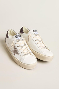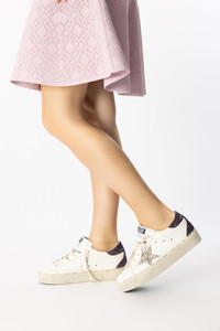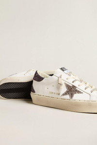 DETAILS AND INSIGHT Golden Goose hi star glitter sneaker in white cinder cabernet. Leather, Glitter Made in Italy Style GWF00119.F006203.11934