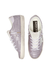 DETAILS AND INSIGHT Golden Goose super star cocco sneaker in lilac/white. Upper-Cow Leather 100% - Lining-Cotton 41%; Cow Leather 31%; Polyurethane Textile 18%; Polyester 6%; Viscose 4% - Sole-Rubber 100% Made In Italy Pre-Order Ships by Feb 7 Style GWF01002.F008118.45405