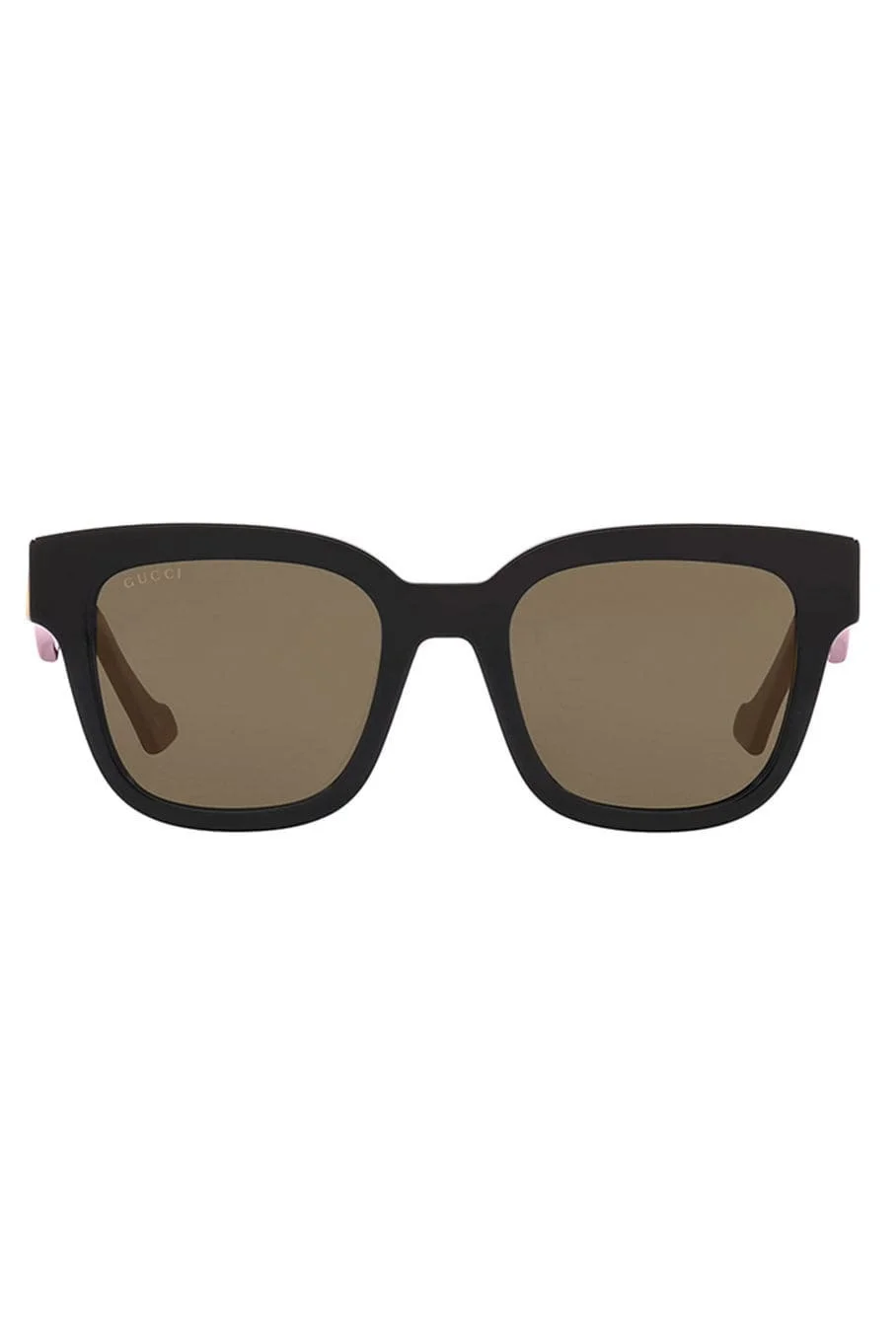 DETAILS AND INSIGHT Gucci logo sunglasses in black pink. 100% Acetate Frame 100% UVA/UVB Protection Made in Italy Style GG0998S-005