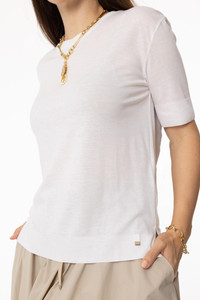 DETAILS AND INSIGHT Herno glam knit t-shirt in white. 67% Lyocell 33% Cotton Dry Clean Made In Italy Style JG000223D-52056-1000