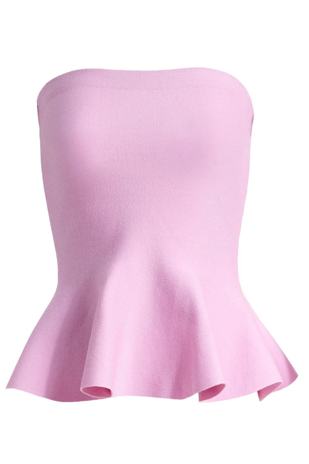 DETAILS AND INSIGHT High Sport eric peplum top in bubblegum. 100% Merino Wool Dry Clean Imported Style 1020Y041-672