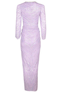 DETAILS AND INSIGHT Jenny Packham darcy gown in lavendar. Polyester 100% Dry Clean Imported Style JPCLS112-LAVENDER