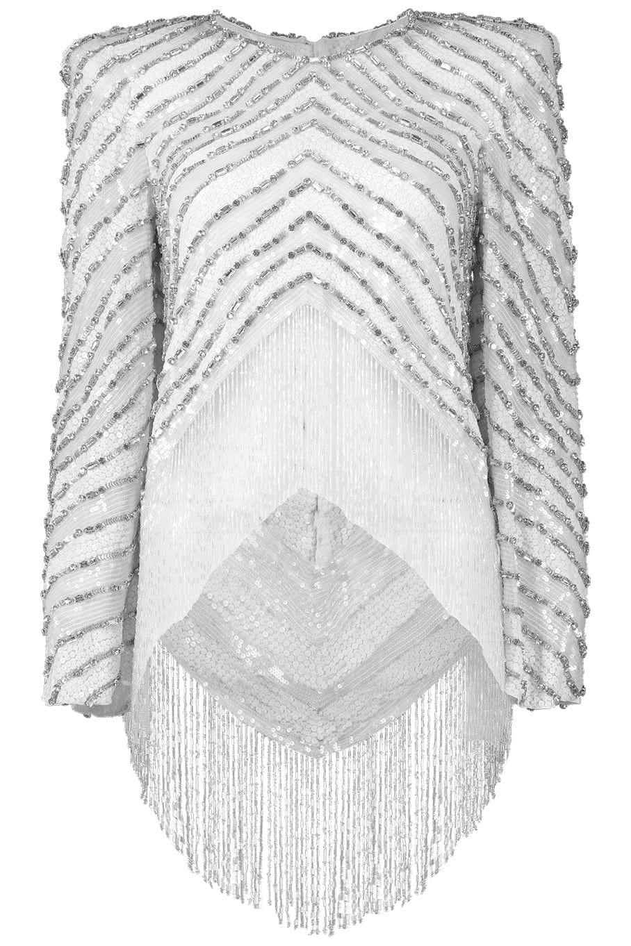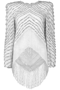 DETAILS AND INSIGHT Jenny Packham disco top in ivory. 100% Polyester Dry Clean Only Made In United Kingdom Style DDT102A-TOP