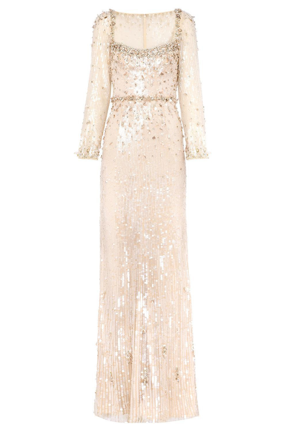 DETAILS AND INSIGHT Jenny Packham kestra gown in almond. 100% polyester Dry clean Made in India Style ZBD107L-2084