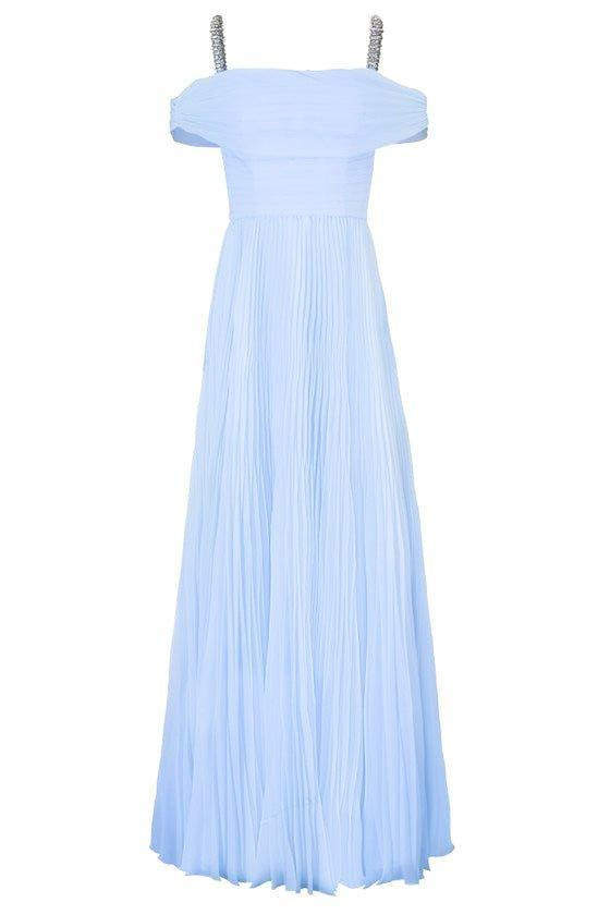 DETAILS AND INSIGHT Jenny Packham mara gown in smoky blue. Shell: Ripple Organza Lining: Polyester Satin Dry Clean Imported Style CCD143L-1077