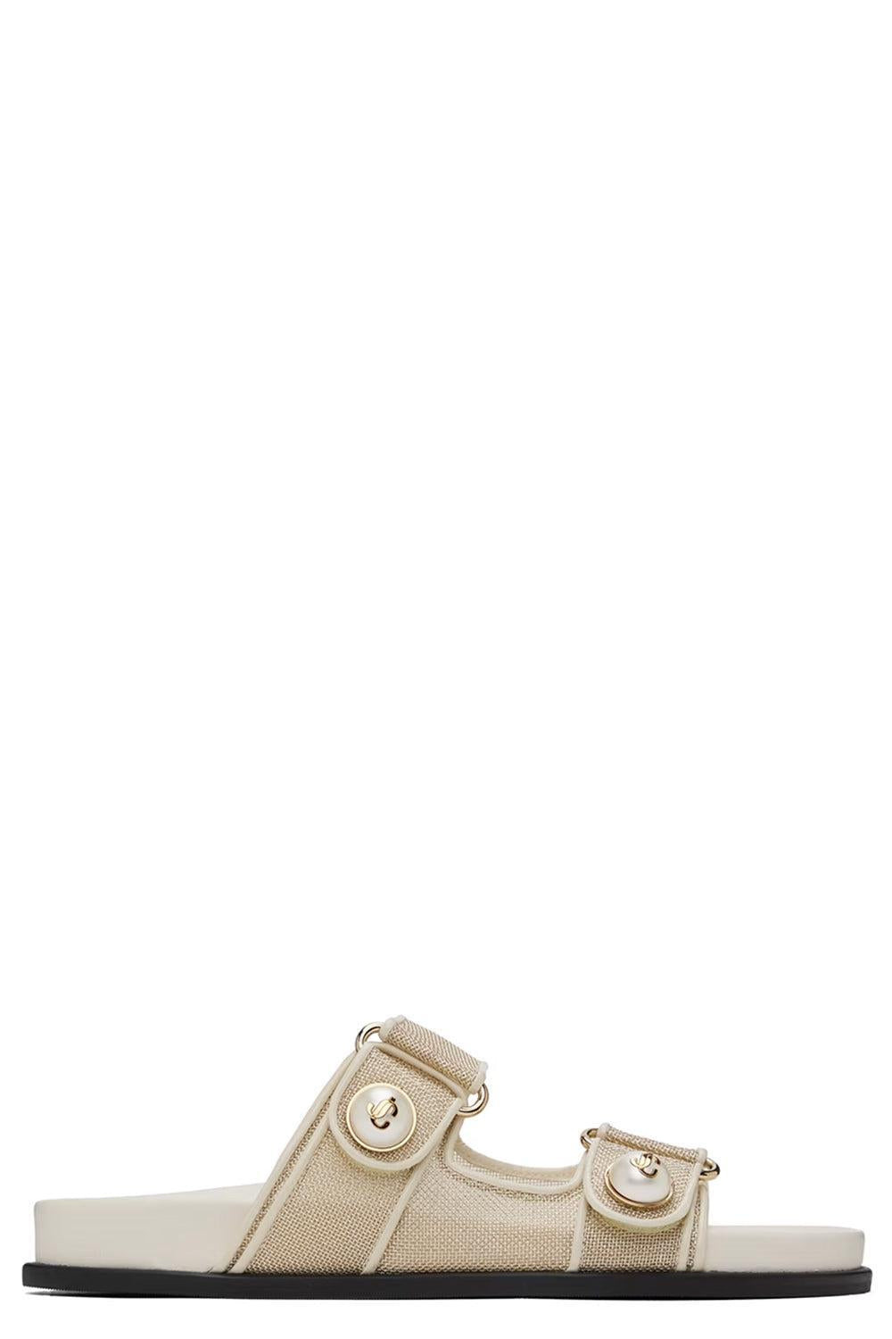 DETAILS AND INSIGHT Jimmy Choo fayence sandal in champagne/latte/ 100% TEXTILE Made in Spain Style J000164531-CHAMPAGNE/LATTE