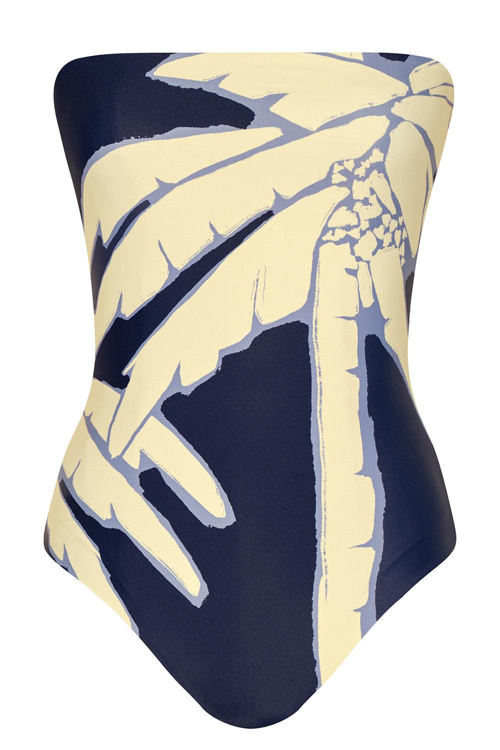 DETAILS AND INSIGHT Johanna Ortiz alta mar one piece in blue/ecru. 78% Polyamide, 22% Elastane Hand Wash Cold Made in Colombia Style PT02642-BLUE/ECRU