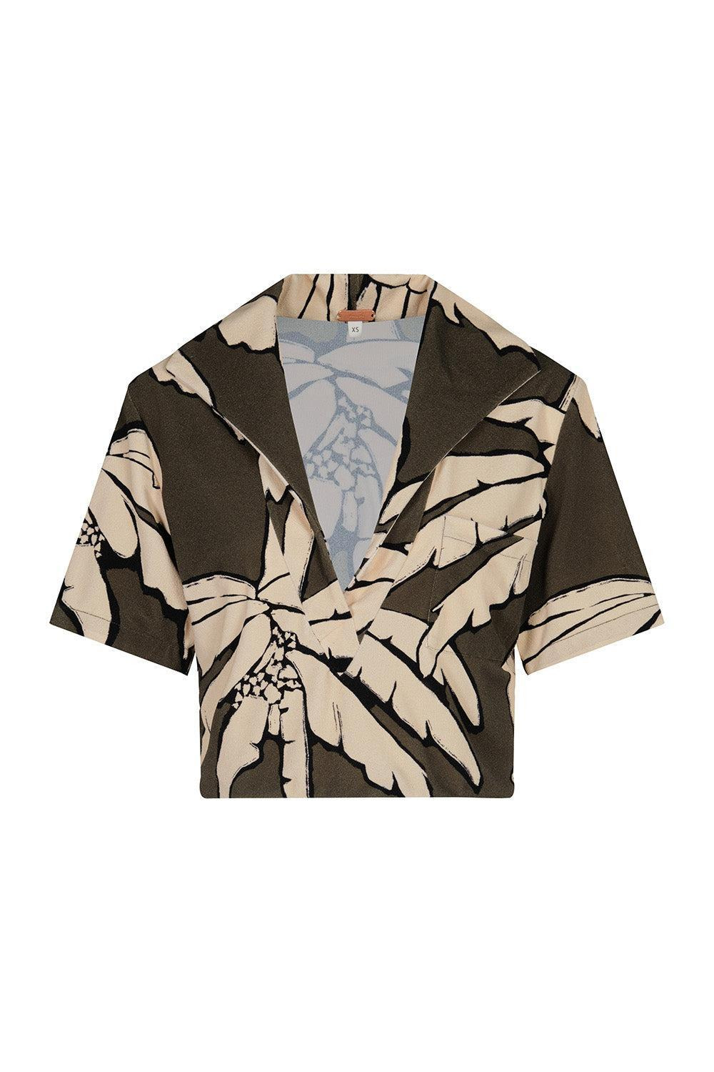 DETAILS AND INSIGHT Johanna Ortiz misty hem t-shirt in salty palms green/ecru. 85% Polyamide, 15% Elastane Dry Clean Made in Colombia Style PT02715-GRN/ECRU