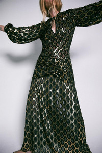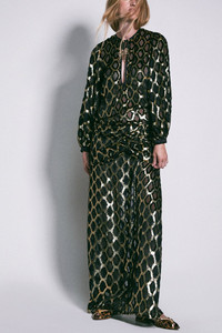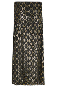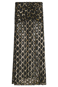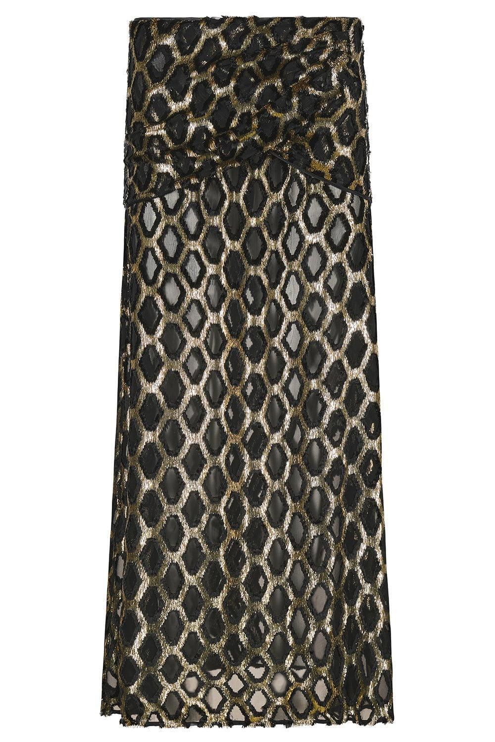 DETAILS AND INSIGHT Johanna Ortiz pura luz skirt in rombus in gold/black. 37% viscose/35% silk/28% metallic polyester Dry Clean Made in Colombia Style PT01534-ROMBUS GOLD/BLK