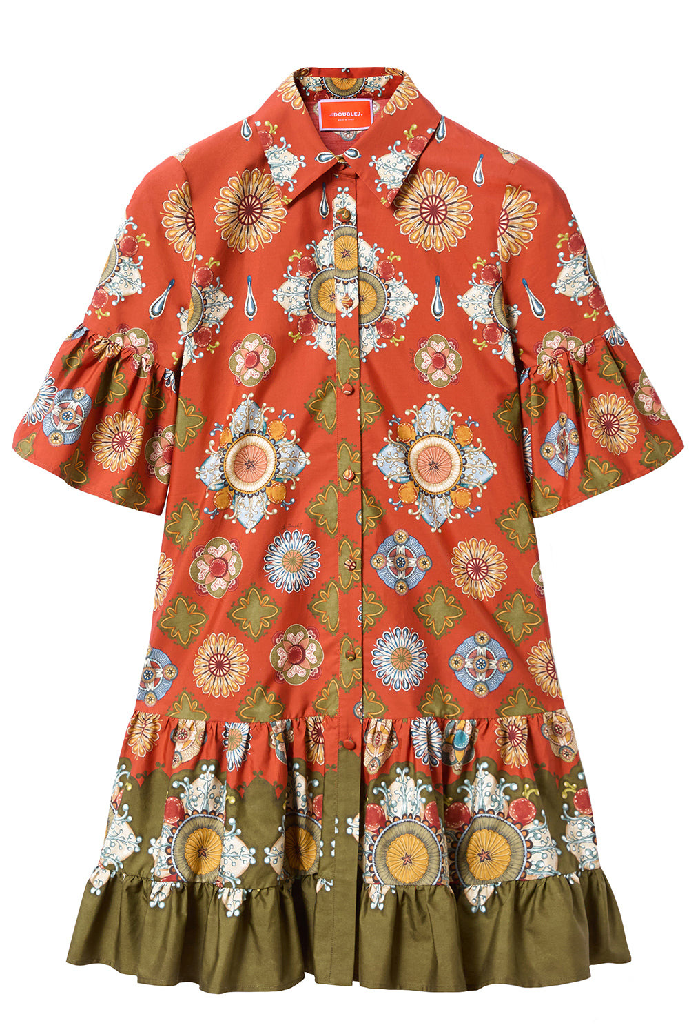DETAILS AND INSIGHT La DoubleJ choux dress in nucleaus placee rust. 100% Cotton Dry Clean Made In Italy Ships by Oct 20 Style DRE0193_COT039NUC02_OR04