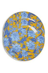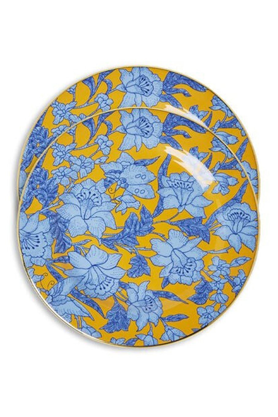 DETAILS AND INSIGHT La DoubleJ dessert plates set of 2 in lilium/zafferano. 100% Porcelain 18K gold trim 20cm x 20cm Dishwasher safe on gentle wash 100% Made in Italy Style DIS0063-CER001-LIL0006
