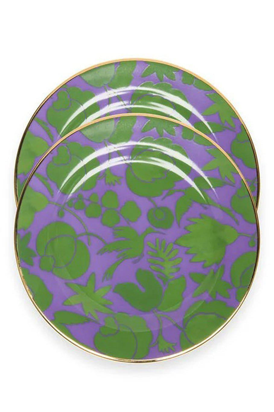 DETAILS AND INSIGHT La DoubleJ dessert plates set of 2 in wildbird lillia/verde. 18K gold trim 20cm x 20cm Dishwasher safe Made in Italy Style DIS0023-CER001-CER0015
