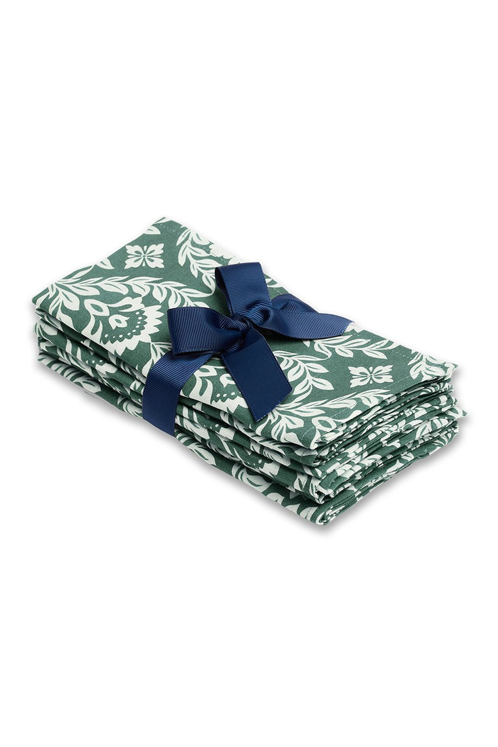 DETAILS AND INSIGHT La DoubleJ large napkins set of 6 in green garland. 100% Linen 45cm x 45cm Machine Wash Warm Set of 6 Napkins Made in Italy Style NAP0002-LIN001-GRL0005_HW12