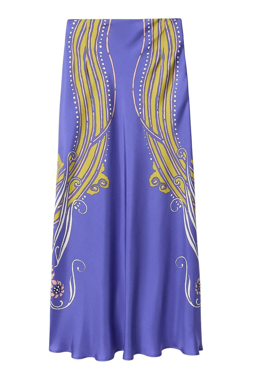 DETAILS AND INSIGHT La Doublej sleek skirt in atlantis placee. 100% Silk Dry Clean Made In Italy Style SKI0127_SIL017ATL03_PU01
